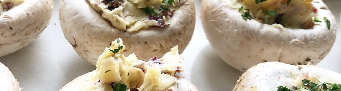 Gevulde champignons met roomboter, cranberry en walnootcrumble:
