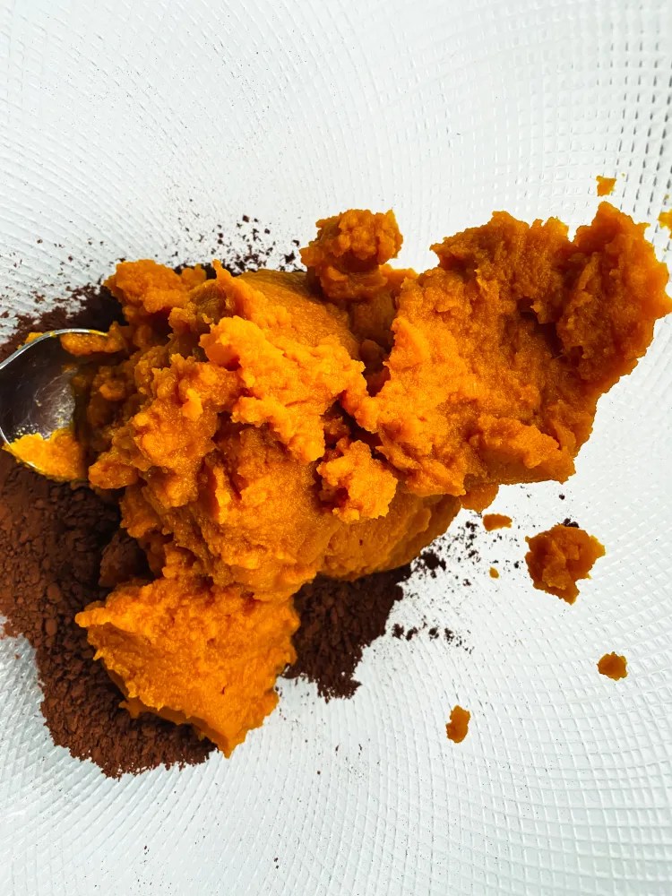- De pompoen die ik gebruikte is van Koro, pompoenpuree uit blik.